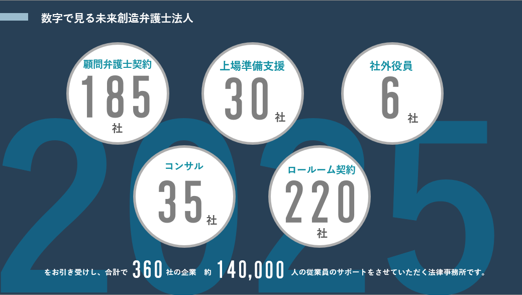 「◯◯で困っているなら、未来創造さんに聞いてみなよ」と自然に紹介してもらえる。 そんな、「日本一、薦めたくなる法律事務所」を目指しています。